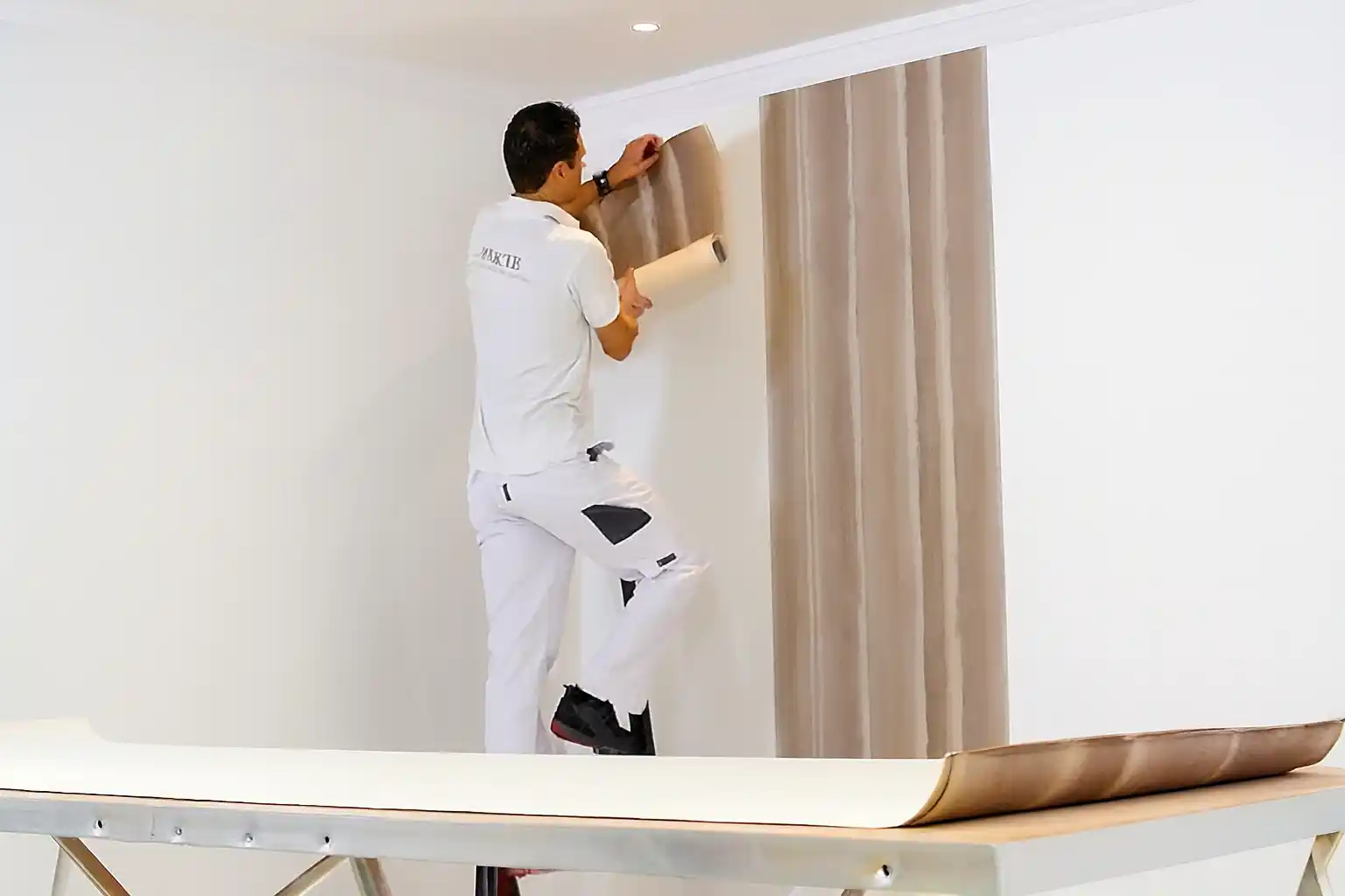 - Professional wallpaper hanging for feature walls or full rooms.